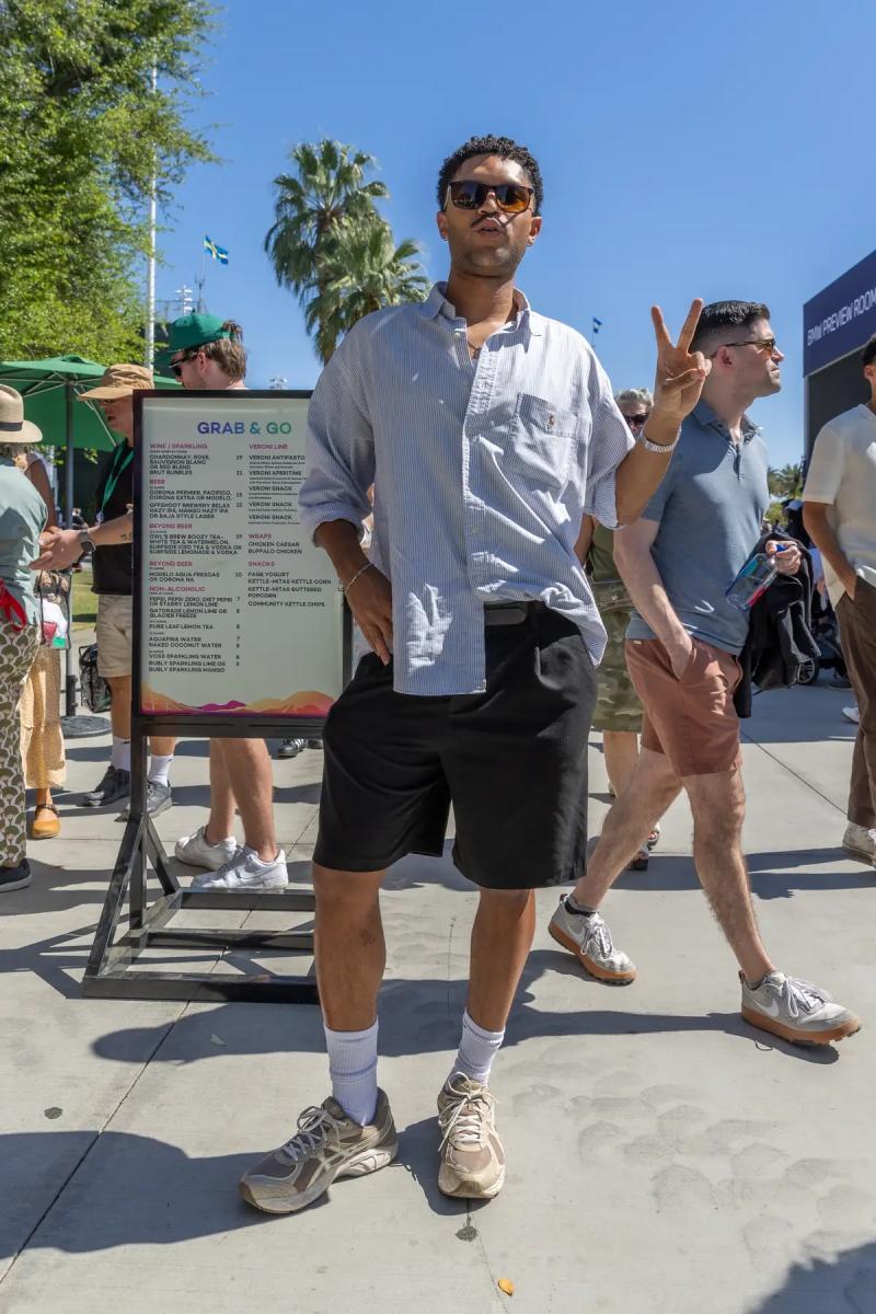 现场氛围充满加州休闲风格。观众们多穿轻薄面料、自然色调和运动服饰,常带有低调奢华的元素。设计师太阳镜、珠宝和鞋履常与亚麻布和连衣裙搭配,展现别样风采。