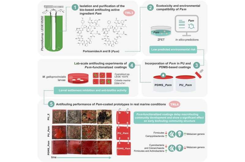 一项由葡萄牙海洋与环境跨学科中心(CIIMAR)牵头、里斯本大学与波尔图大学参与的研究显示,海洋蓝藻产生的天然肽可作为防污涂层活性成分,用于替代当前海事行业广泛使用的有毒生物杀灭剂。