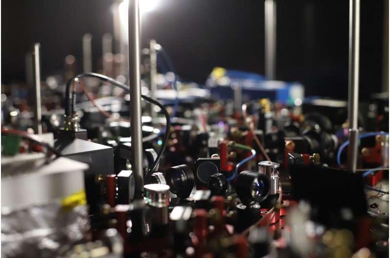 为获得上述图像,研究人员首先将钾原子云冷却至接近绝对零度,使原子运动显著减缓并形成玻色-爱因斯坦凝聚态。随后,研究人员从不同方向发射两束激光,将原子的自旋态与动量耦合,形成自旋轨道耦合的玻色-爱因斯坦凝聚体。在该状态下,两种不同动量的原子态发生干涉,从而在原子云中产生条纹图案并形成超固体。