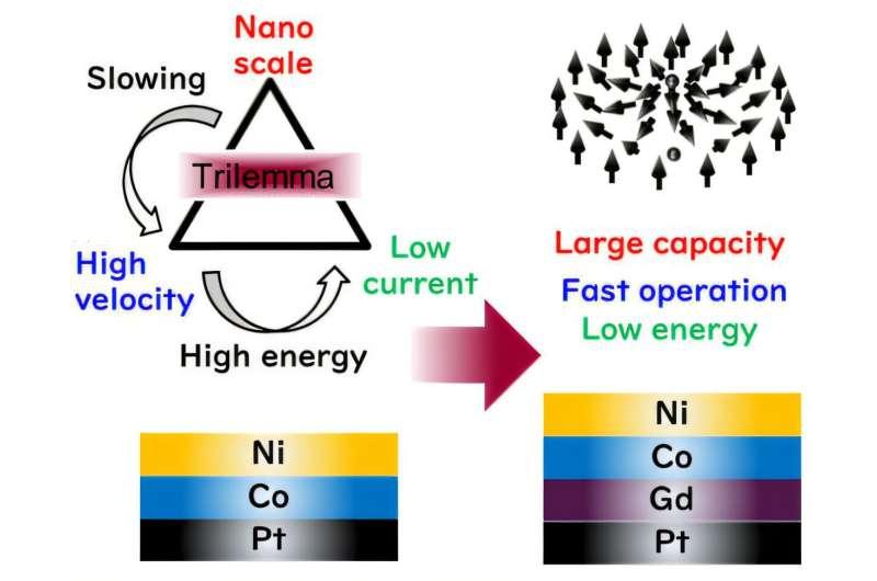 不过,斯格明子研究长期面临所谓“三难困境”,即尺寸、速度与功耗之间存在相互制约:缩小斯格明子可提升存储密度,但其运动速度可能下降;若要提高速度,往往需要更强电流,从而削弱低功耗优势。研究团队将目标指向在不显著增加能耗的前提下,实现小尺寸斯格明子的更快移动。