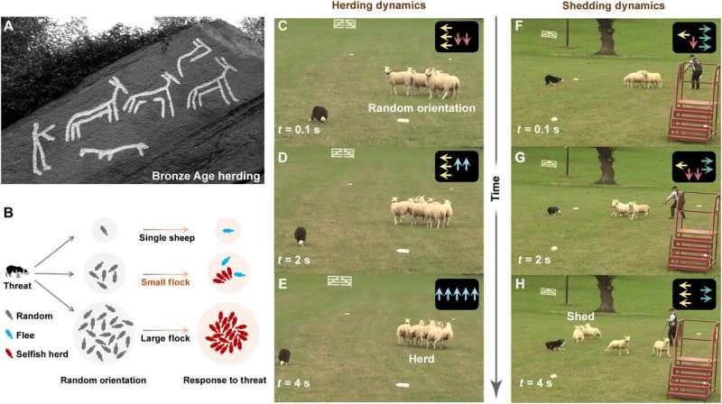 当捕食者逼近羊群时,处在边缘的个体往往会向中心靠拢,以降低自身风险。Bhamla 称这种现象为“自私的群体”行为。牧羊人正是利用训练有素的牧羊犬来触发和放大这种本能反应。