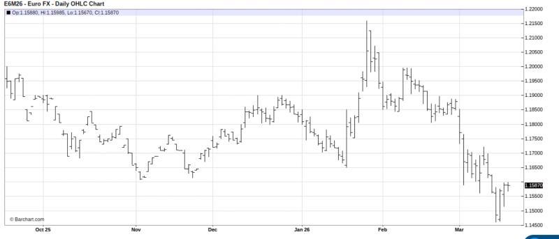 在技术层面,部分市场参与者关注六月欧元货币期货在1.1500一线的图表支撑表现。有观点称,若价格跌破该水平,将被视为进一步走弱的信号,下行目标或被设定在1.1000附近甚至更低。同时,1.1700一线被视为重要技术阻力位,部分交易者据此考虑在该水平上方设置保护性买入止损单。