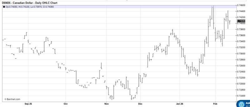 从技术走势看,有分析指出,3月加拿大元期货日线图显示价格处于上行通道,多头在近期技术面中被认为占据主导。一些市场参与者据此认为,当前趋势对多头相对有利。
