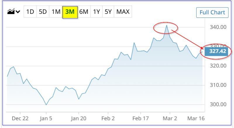 此外,按照历史股息收益率方法估算的目标价约为338.57美元。