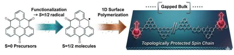 研究人员在近期发表于《ACS Nano》的一项工作中提出,可基于纳米石墨烯分子单体在表面构筑一维聚合链,并通过化学手段调控电子与自旋结构,使同一分子骨架呈现两种不同的拓扑量子磁体平台。研究关注的核心在于:一维自旋链不仅可作为整体表现出量子特性,其关键性质还可能以边缘态形式出现在链的端点。