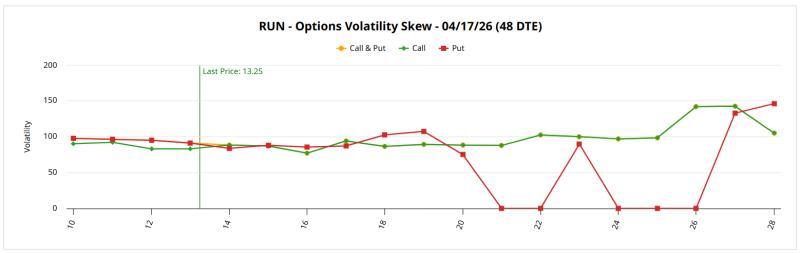 尽管如此,期权市场的结构性信号与股价表现并不完全一致。4月17日到期合约的波动率偏斜显示,在现价附近并未出现异常突出的避险需求。与Sunrun类似,较低执行价一侧的隐含波动率曲线相对平稳,未见明显的“恐慌式”保护性买盘。