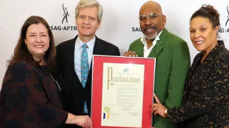 曾任纽约市影视专员的梅宁回忆起她任职期间努力吸引更多项目来纽约拍摄的经历。“我与你们携手合作,将电视和电影制作提升到了城市历史上的最高水平,”她对现场数十位利益相关者说道。她还多次提到曾在SAG-AFTRA办公室的经历,并特别感谢纳德勒和埃斯皮纳尔。