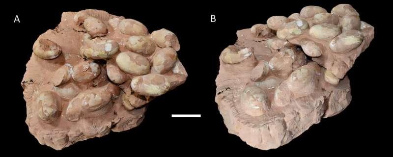 研究人员在《脊椎动物古生物学杂志》发表论文称,他们在巴西Bauru组晚白垩世地层分析了三组化石蛋窝,其中编号为MPM 447的一组包含47枚蛋,被认为是迄今发现的最大中生代鳄形类蛋窝。