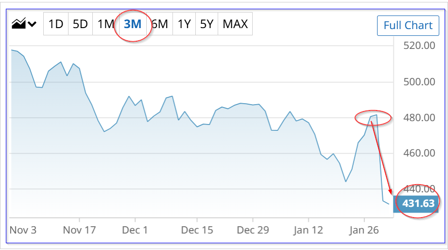 - 430.13美元当前股价 × 1.2124 ≈ 521.49美元