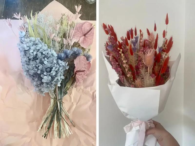 干花持久美观,适合不喜欢频繁打理的人。加州Idlewild Floral的干花设计创意十足,花束有小、中、大三种尺寸。花材采摘于盛开期,经过自然干燥和甘油处理,质感自然不塑料感。新推出的“Forever Plants”系列加入干燥绿植,依然鲜活。