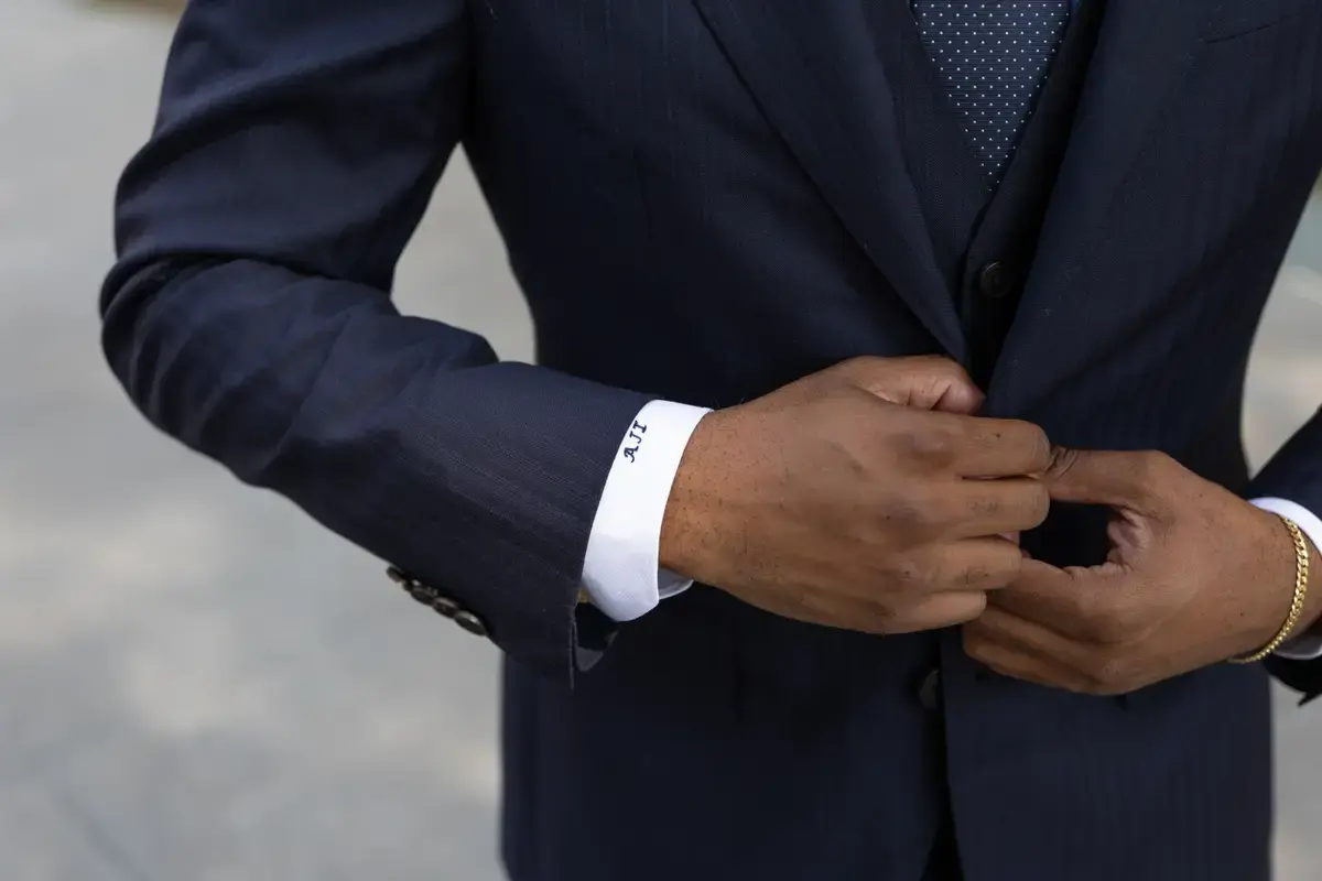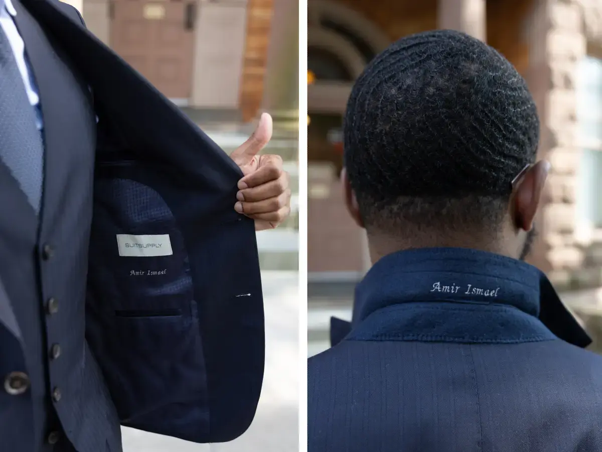 这里说的定制不仅仅是尺寸,几乎西装的每个部分都可以根据你的喜好定制——从内衬、翻领、口袋、纽扣,到如果你选择添加的话,甚至包括刺绣的颜色和字体。
