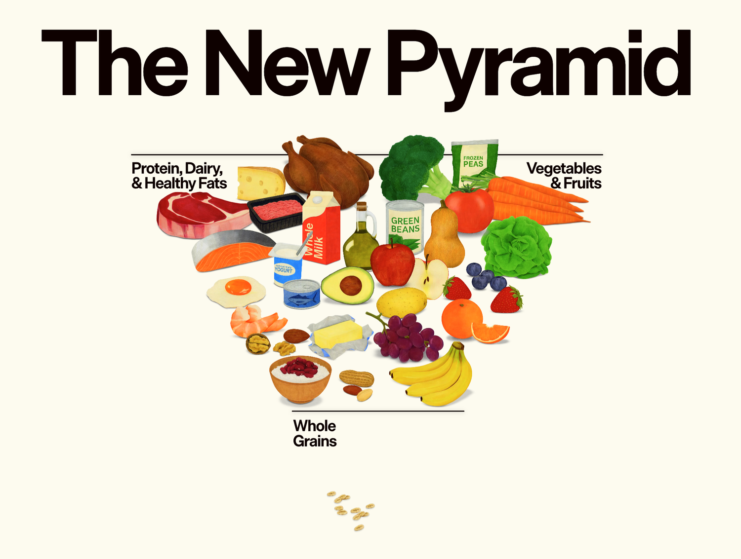 虽然2011年膳食指南将食物金字塔替换为MyPlate作为均衡饮食的视觉指导,新版指南重新引入了倒置的食物金字塔。