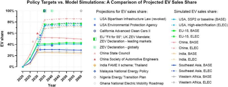 论文第一作者潘帅(前康奈尔大学博士后研究员,现任中国南京信息工程大学)指出,如此大幅的电动汽车普及,将在美国、欧洲和中国等主要市场显著降低能源消耗和尾气二氧化碳排放,同时也会减缓印度、东南亚和西非等发展中地区的排放增长速度。