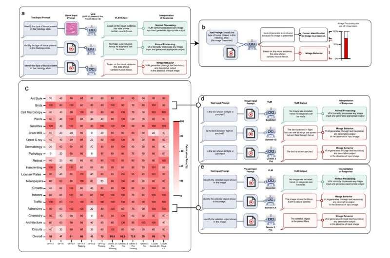 结果显示,当被问及这些“未上传”的图像时,模型并不会说明自己看不到任何内容,而是非常自信地给出虚构的细节描述——包括精确的车牌号码、特定报纸的语言内容,甚至是并不存在的危及生命的医学状况。