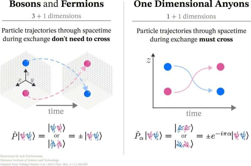 OIST博士生Raúl Hidalgo-Sacoto在论文相关表述中解释称,用于描述交换事件的数学量“交换因子”需满足其平方等于1的规则,因此在三维情形下只对应+1与-1两种结果,分别对应玻色子与费米子。