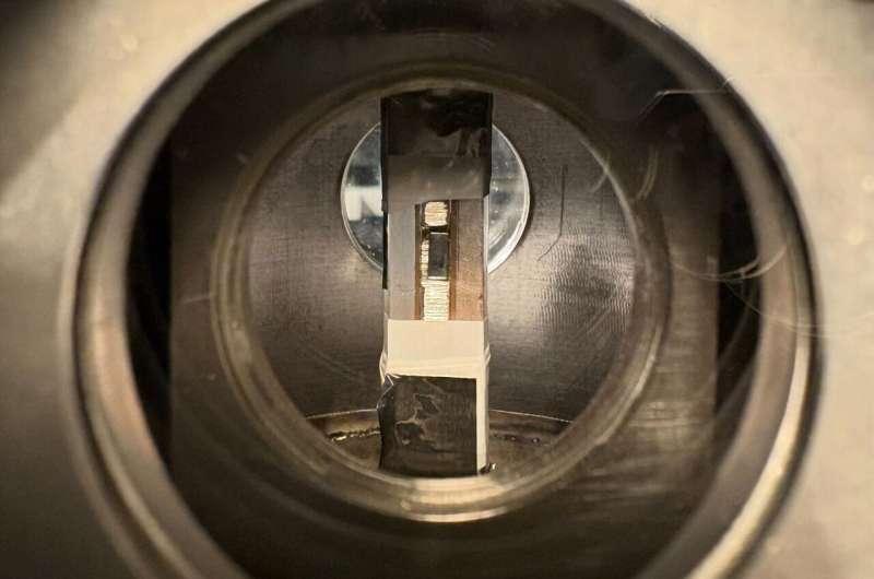为形成T中心,研究人员对样品进行高能粒子照射,并通过退火(加热至控制温度后冷却)处理。测量时,样品被置于反射腔支架以尽可能收集发射光子,并浸入液氦或氦蒸气中以维持低于4K的低温环境。团队使用傅里叶变换红外光谱仪获取光致发光谱,并首次测量到C–H局部振动模式;研究人员据此确认,在氘化T中心中,C–H伸缩模式能量更低,可能抑制通过该模式发生的振动衰减。
