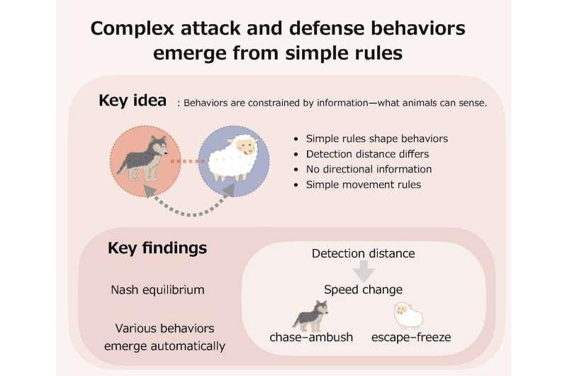 动物在自然环境中的生存依赖有效的攻击与防御策略,但这些行为如何产生并在不同条件下保持稳定,长期以来缺乏统一解释。富山大学研究团队的一项计算研究提出,捕食者与猎物之间看似复杂的互动模式,可能源自简单的感知能力与运动规则,并以稳定的数学形式呈现。