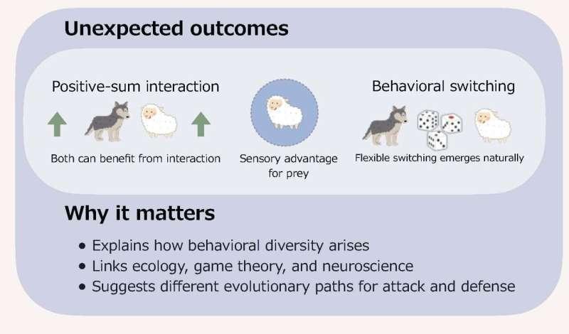 研究团队认为,感知能力的细微差异可能触发行为策略的显著转变,例如猎物在逃跑与僵住之间的选择,或捕食者在追逐与伏击之间的切换。市条浩之表示,该研究旨在提供理解自然环境中动物行为的一般框架,为解释策略为何出现并保持稳定提供理论基础,并可能对未来机器人与人工智能应用带来启示。