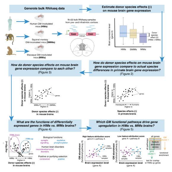 论文资深作者、西北大学研究员 Katie Amato 表示,研究团队能够将小鼠大脑的数据与真实的人类和猕猴大脑数据进行对比,结果显示,小鼠脑内基因表达的多种模式与相应灵长类动物大脑中观察到的模式相似。她称,从某种意义上看,小鼠的大脑在基因表达层面“表现得更像”其所接种微生物来源的灵长类动物的大脑。