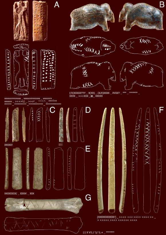 研究者认为,这些刻画更接近一套稳定、约定俗成的符号系统,用于在无文字条件下以视觉方式存储和传递信息。符号的分布位置也呈现出明显规律:象牙雕像等物品上的符号序列往往更为密集和复杂,超过日常工具上的刻画;某些符号则与特定主题关联,例如点常见于人形和猫科动物形象上,而十字多出现在猛犸象和马等动物形象上,却从未出现在人形上。