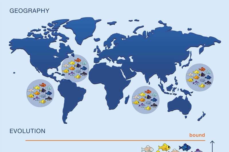 珊瑚礁鱼类以条纹、斑点、眼状斑、鞍状或迷宫状等多种图案著称。围绕这些视觉特征的来源,研究界长期关注其究竟主要由各海域的局部生态压力塑造,还是遵循更普遍的进化规律。