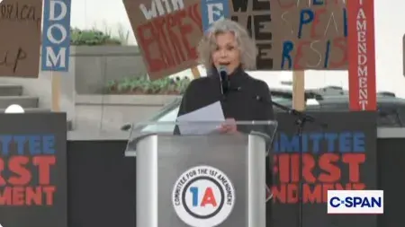 简·方达于周五带领她的第一修正案委员会来到华盛顿特区,举办了一场“无王日”前的集会,重点关注唐纳德·特朗普对媒体的攻击以及派拉蒙与华纳兄弟探索合并的悬而未决事宜。