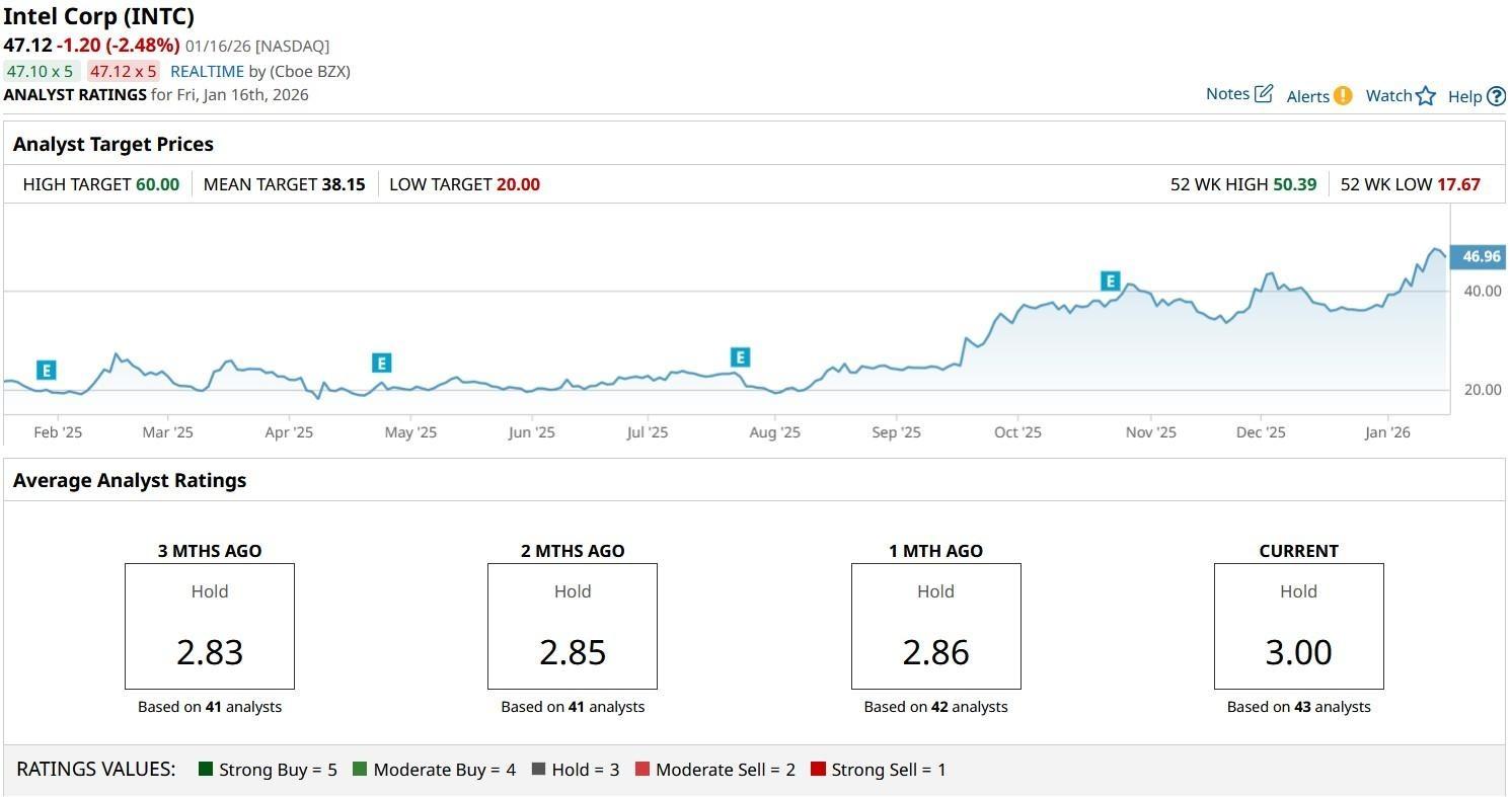 目前市场对英特尔的共识评级为“持有”,但部分机构给出的目标价最高达到每股60美元。以当前股价水平测算,这一目标价对应的潜在上涨空间约为30%。