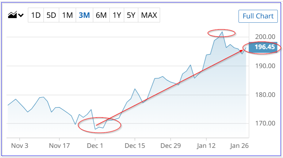 若投资者以当前价格直接持有100股,股价从198.17美元升至235.00美元,单股盈利36.83美元(文中示例以198.29美元为成本,对应盈利36.71美元),合计利润约3671美元,投入约19289美元,回报率约19%。
